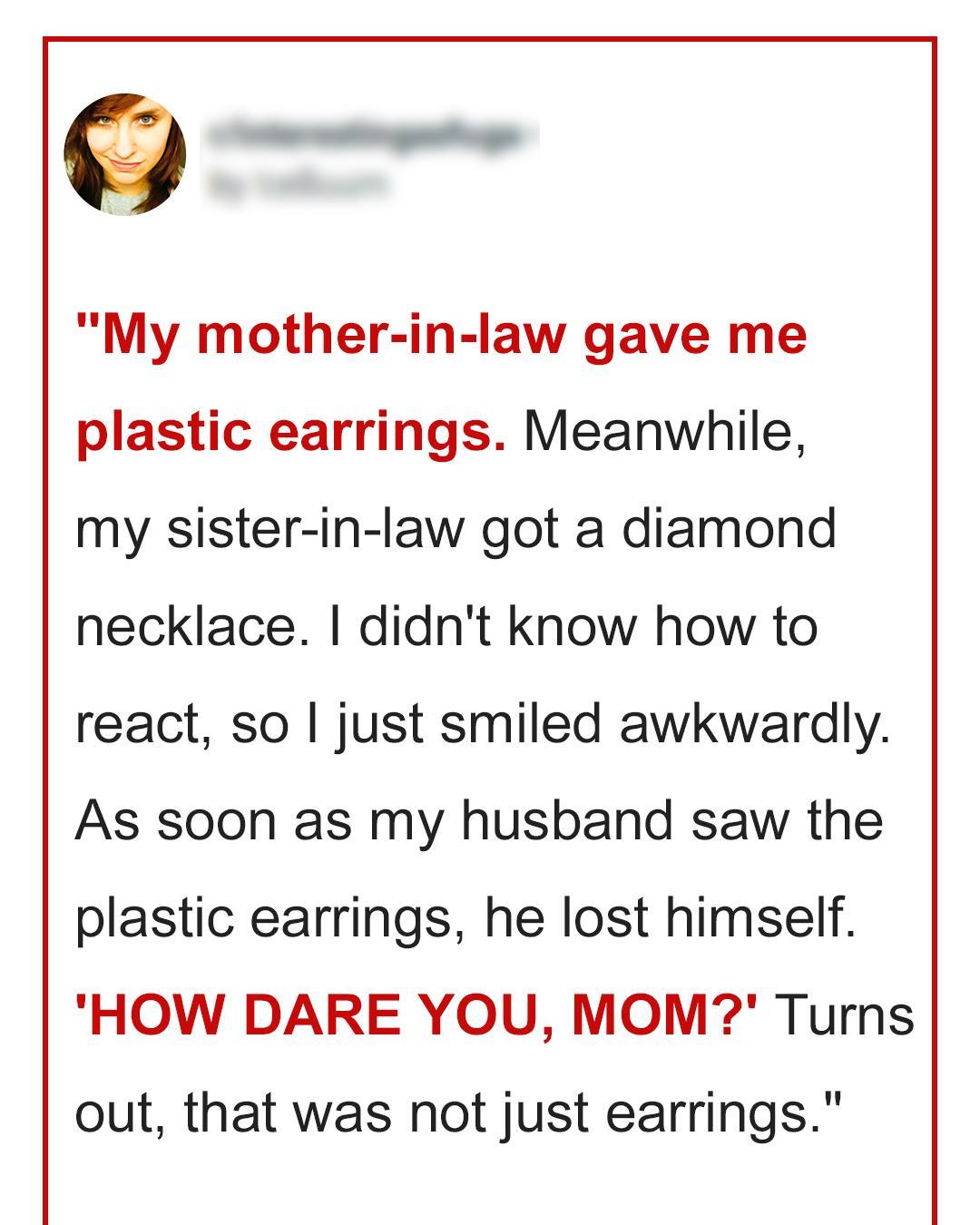 Imagine the scene: a generous gift exchange where my mother-in-law presents my sister-in-law with a dazzling diamond necklace, while I receive a pair of seemingly ordinary plastic earrings. You can guess the initial reactions. My husband was quite upset, and understandably so. But as it turns out, there was an unexpected story unfolding behind the earrings that were anything but ordinary.