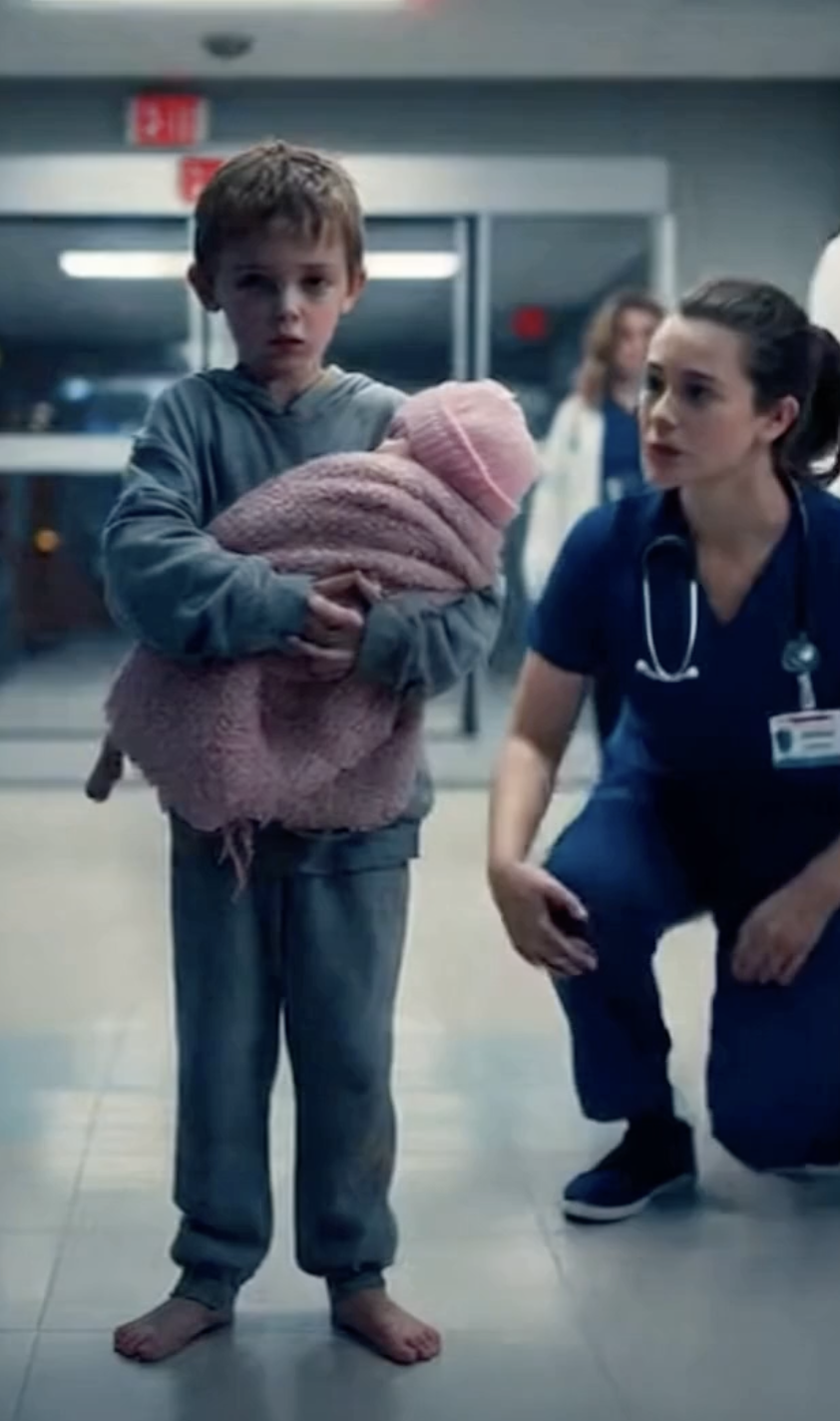 Just after midnight, the sliding doors at St. Catherine’s Hospital hissed open. A 7-year-old boy stepped inside, barefoot, shaking, and holding a baby girl wrapped in a worn pink blanket tight against his chest.