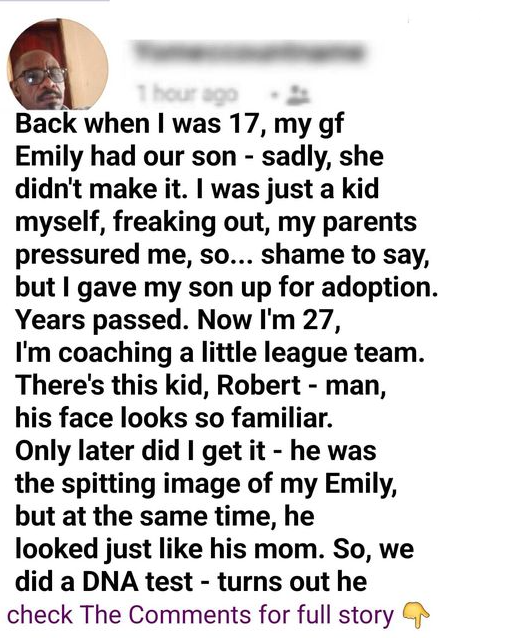 Daniel, now a dedicated 27-year-old coach for a kidsโ baseball team, never expected how much his life would change on that ordinary afternoon. The game was in full swing when he noticed one of the young players, Robert, had an uncanny likeness to someone from his past, stirring memories that Daniel had long tried to put behind him. It was Emily, his high school sweetheart, who suddenly reappeared in his thoughts. Suddenly, Daniel was flooded by emotions and an unsettling question: could this young boy be his son?