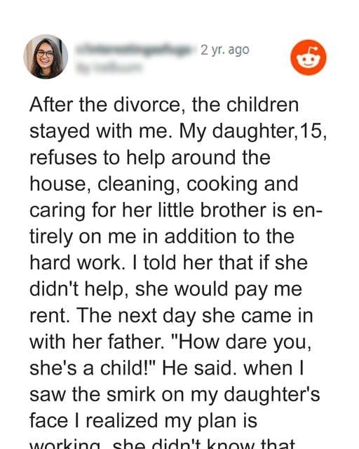 She laughed, dismissed me with another roll of her eyes, and returned her attention to her phone. As I walked away, tears of frustration welled up. That night, I devised a new plan: if Claire refused chores, then she’d pay rent like a tenant. It was a harsh idea, but I felt cornered.