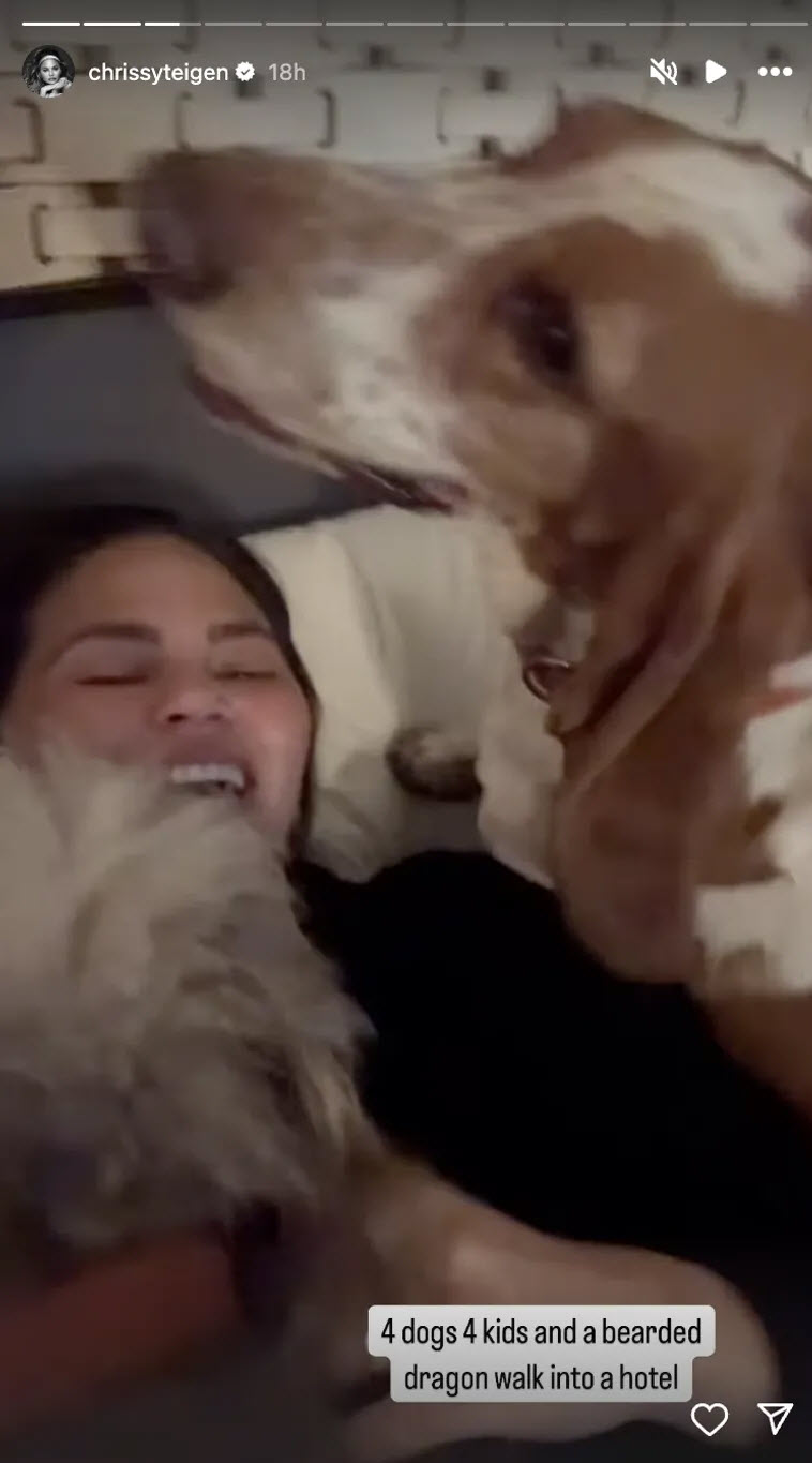 Another post displayed her pets accompanied by the witty caption: โ€œ4 dogs 4 kids and a bearded Dragon walk into a hotel.โ€ With this, she intended to convey the challenges they faced in relocating their entire family.