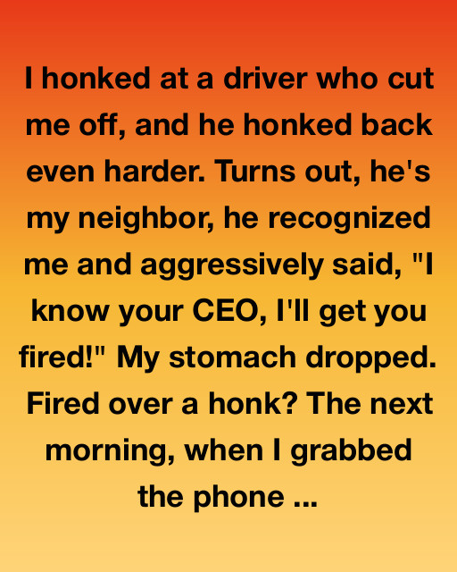 I honked at a driver who cut me off, and he honked back even harder. Turns out, he’s my neighbor, he recognized me and aggressively said, “I know your CEO, I’ll get you fired!” My stomach dropped. Fired over a honk? The next morning, when I grabbed the phone, I saw a text from my manager: “Call me when you’re free, it’s urgent.”