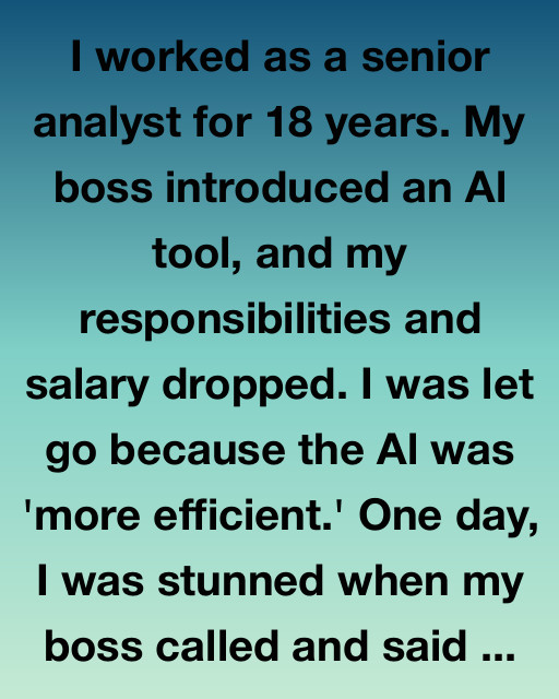 I worked as a senior analyst for 18 years. My boss introduced an AI tool, and my responsibilities and salary dropped. I was let go because the AI was “more efficient.” One day, I was stunned when my boss called and said he needed my help.