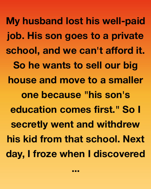 My husband lost his well-paid job. His son goes to a private school, and we can’t afford it. So he wants to sell our big house and move to a smaller one because “his son’s education comes first.” So I secretly went and withdrew his kid from that school. Next day, I froze when I discovered… he had already accepted an offer on our house.