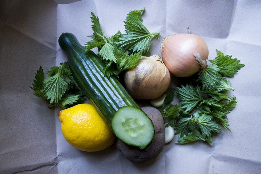 - Blend the cucumber and celery with the nettle water (or plain water if using fresh nettle).