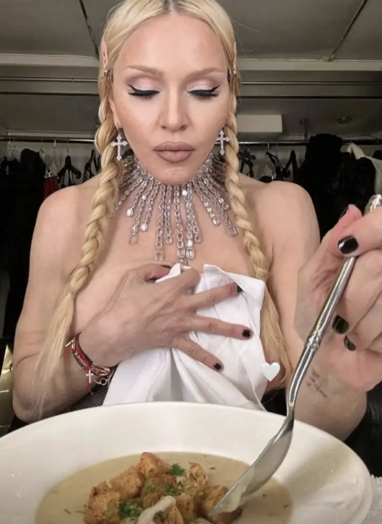 Madonna, the ever-controversial pop icon, has once again sparked a lively discussion among her fans and followers after posting a series of eye-catching photos on Instagram where she’s topless and enjoying a meal. Known for pushing boundaries throughout her career, Madonna’s social media presence is no exception and has often stirred reactions.