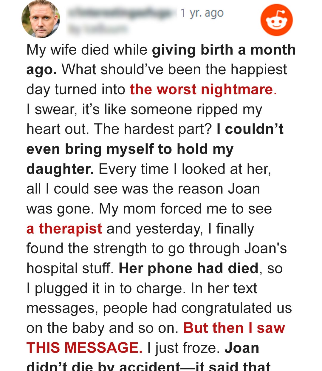 After childbirth, David experienced an unimaginable loss; his beloved wife, Joan, passed away, leaving him unable to face their newborn daughter or sort through Joan’s belongings. However, after working with a therapist, David found the strength to revisit his wife’s possessions. As he charged her phone, he uncovered a series of text messages that transformed his perspective.