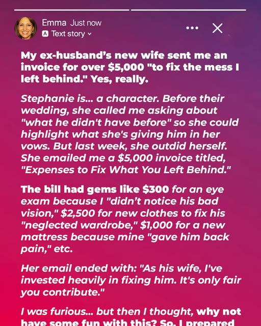 Receiving an email from my ex-husband’s new wife was the last thing I expected, especially one with a bill attached. The list of “expenses caused by me” left me stunned, but I wasn’t going to let her audacity go unanswered.