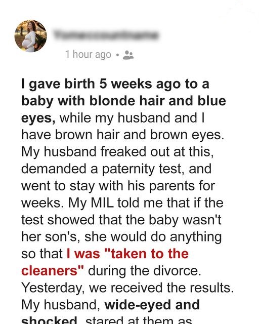 My husband was immediately alarmed by this difference and brushed off my attempts to explain that many newborns display lighter hair and eyes at birth that often darken with time. Insisting on clarity, he demanded a paternity test, even going as far as to threaten divorce if I did not consent. Reluctantly, I agreed.