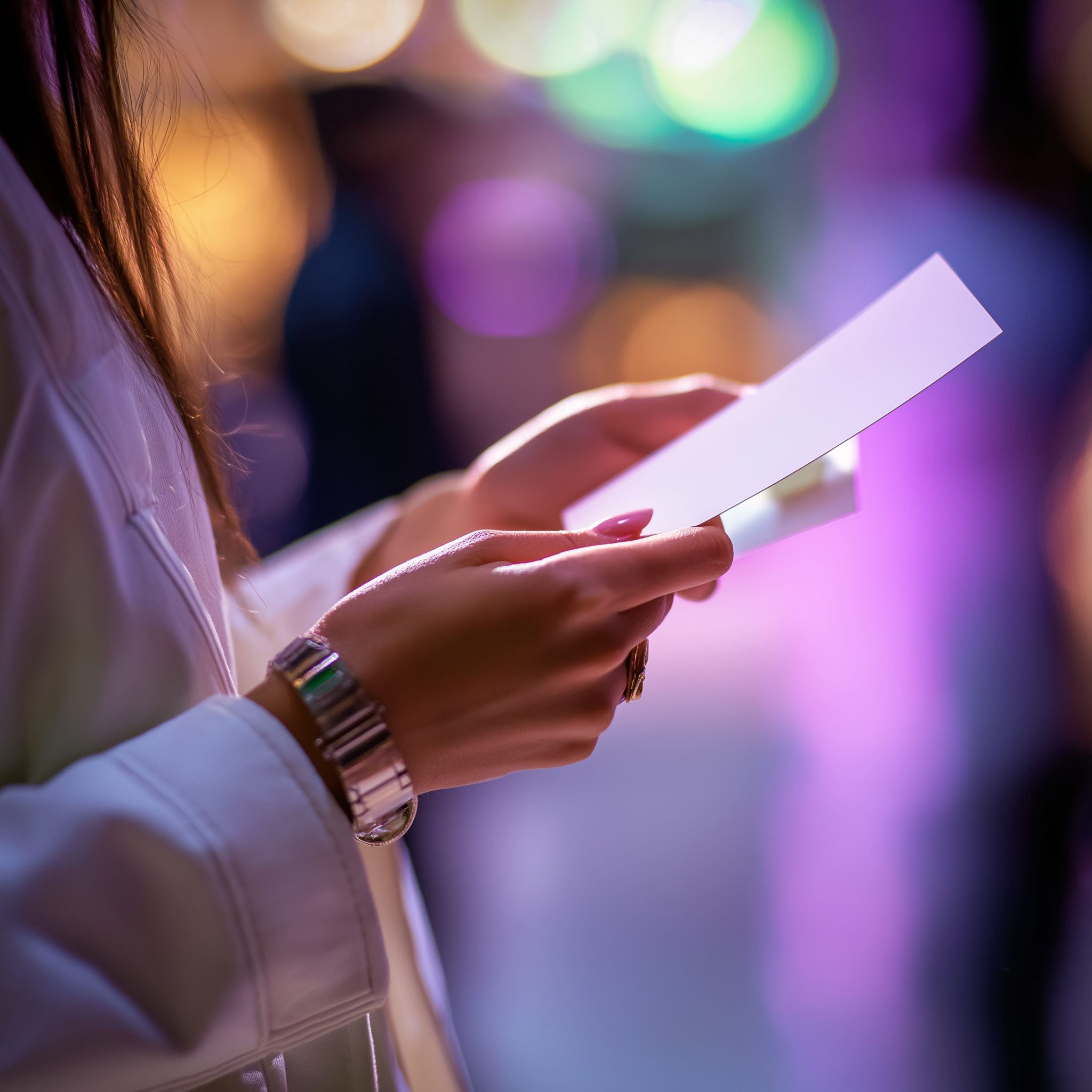 Candlelit tables flickered in the dim light. Bouquets filled the space, their scent surrounding me. My pulse raced.