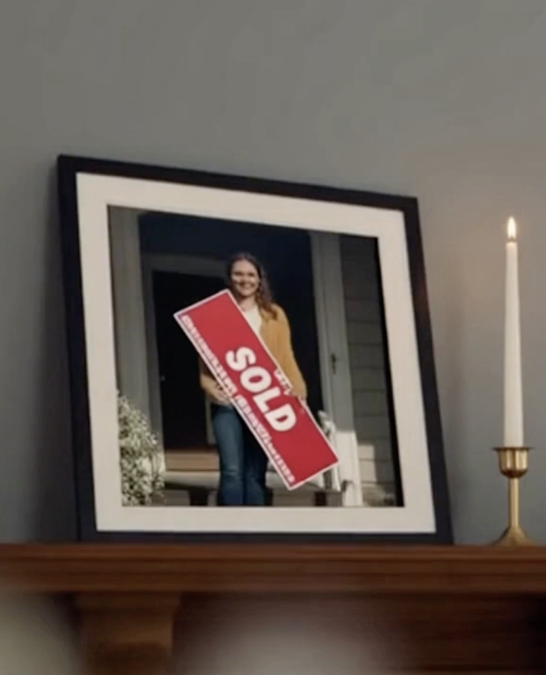It was a blown-up print of her, standing on the front steps, holding a SOLD sign.
