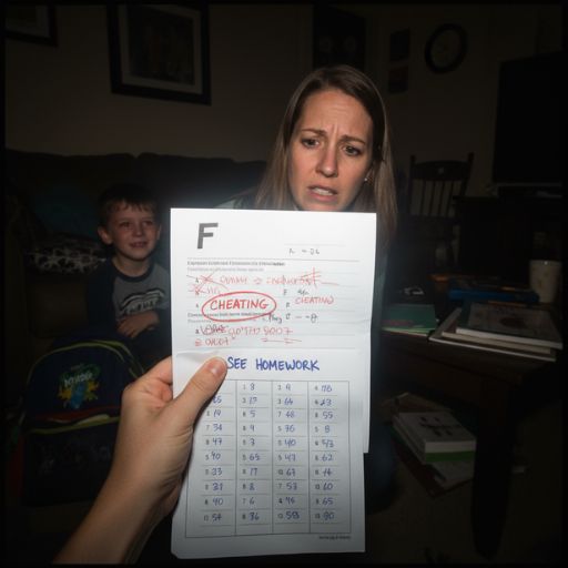 Just a bright red “F” scrawled across the top of his math test with the word “CHEATED” underlined—twice.