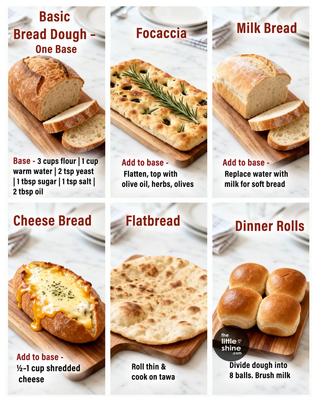 Thereโs something comforting about fresh, warm bread made at home. With just one simple dough, you can prepare a variety of delicious, wholesome breads without complicated steps or unhealthy ingredients. This basic recipe is easy to follow, reliable, and perfect for creating both savory and lightly sweet options. Once you learn it, youโll be able to make many different breads from the same base.