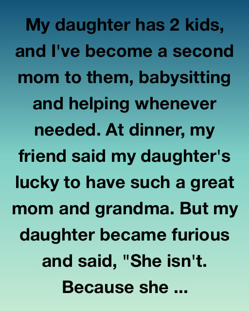 My daughter has 2 kids, and I’ve become a second mom to them, babysitting and helping whenever needed. At dinner, my friend said my daughter’s lucky to have such a great mom and grandma. But my daughter became furious and said, “She isn’t. Because she wasn’t there when I needed her most.“