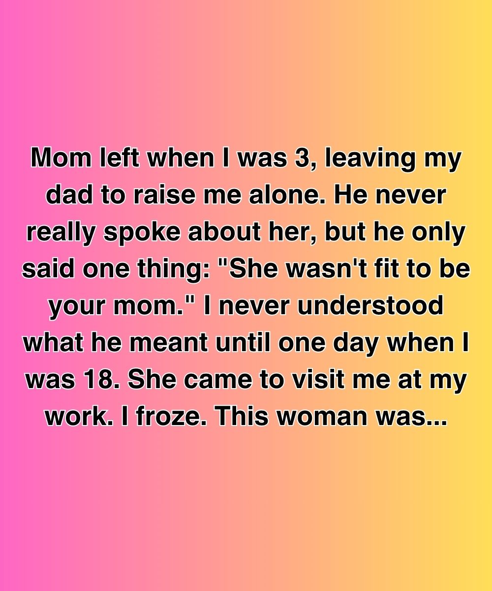 Mom left when I was 3, leaving my dad to raise me alone. He never really spoke about her, but he only said one thing: “She wasn’t fit to be your mom.” I never understood what he meant until one day when I was 18. She came to visit me at my work.