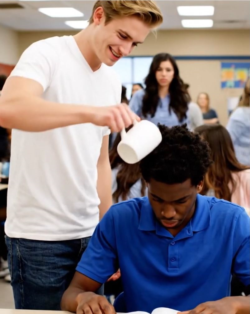 The room fell silent for a moment. Gasps broke out. Students stared, unsure whether to laugh or look away. The hot liquid soaked through Marcus’s clothes, dripping onto the floor beneath him.