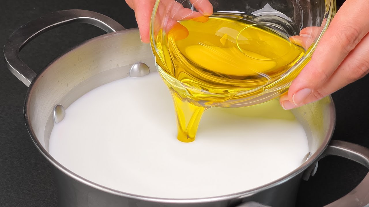- The Oil Introduction: While the milk is warming, slowly drizzle in the olive oil.