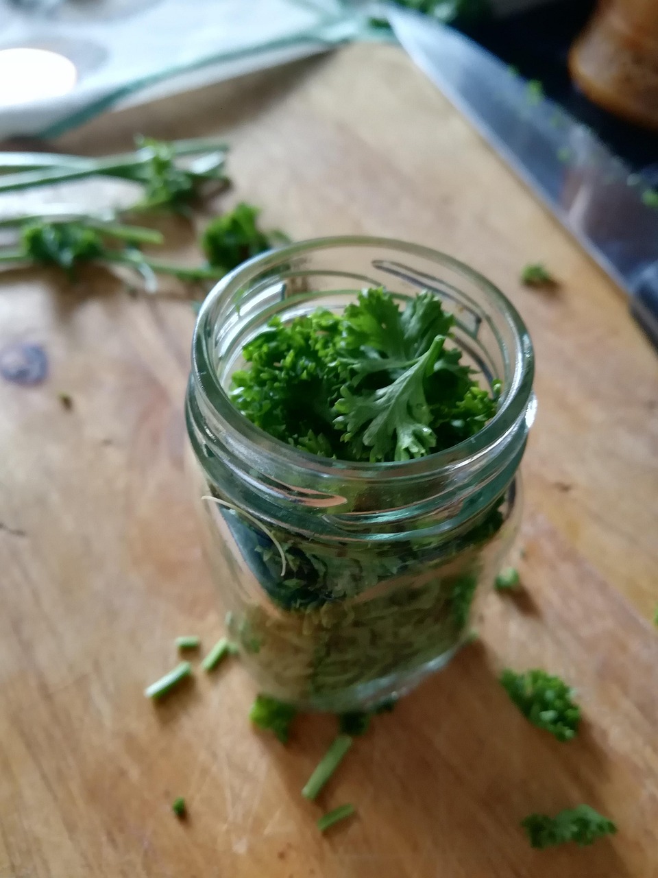 By submerging the herbs in a high-quality oil, you create a barrier that protects the parsley from the air and concentrates its flavor.