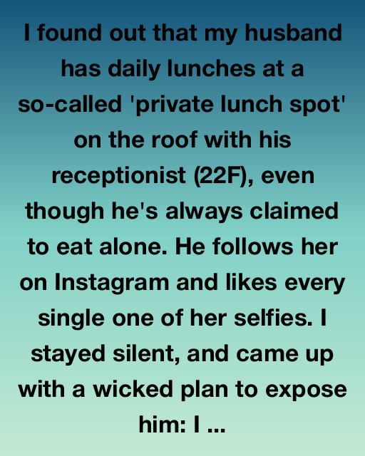 I found out that my husband has daily lunches at a so-called “private lunch spot” on the roof with his receptionist (22F), even though he’s always claimed to eat alone. He follows her on Instagram and likes every single one of her selfies. I stayed silent, and came up with a wicked plan to expose him: I started sending him lunch in a bright red box.