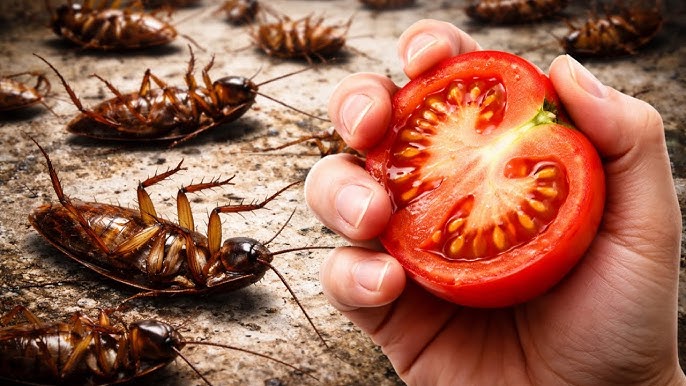 4. The Effect: The concentrated scent of the tomato’s “green” defense acts as a natural repellent, forcing cockroaches to evacuate the area in search of a less “hostile” scent.