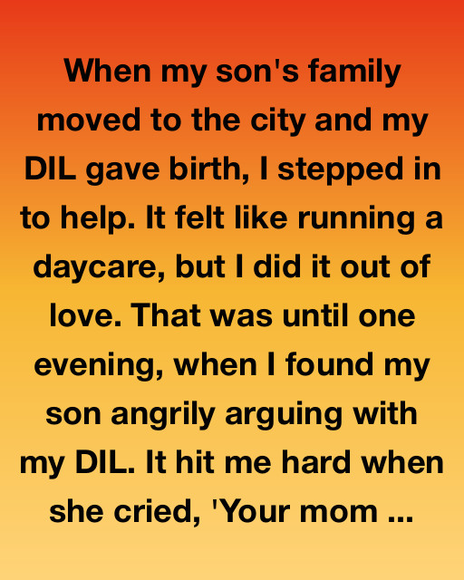 When my son’s family moved to the city and my DIL gave birth, I stepped in to help. It felt like running a daycare, but I did it out of love. That was until one evening, when I found my son angrily arguing with my DIL. It hit me hard when she cried, “Your mom doesn’t even like me!”