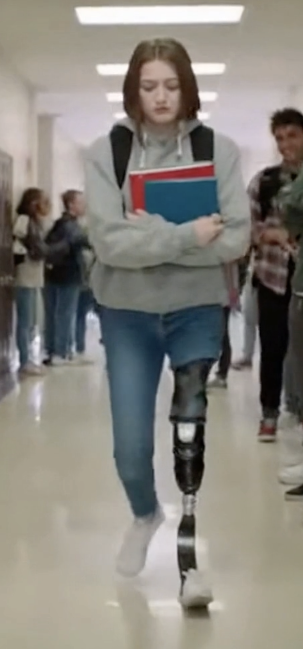 Fifteen-year-old Lily Carter walked with her books clutched tight against her chest, her prosthetic leg clicking softly against the tile. Every step was steady, practiced. But today, it wasn’t enough to avoid them.