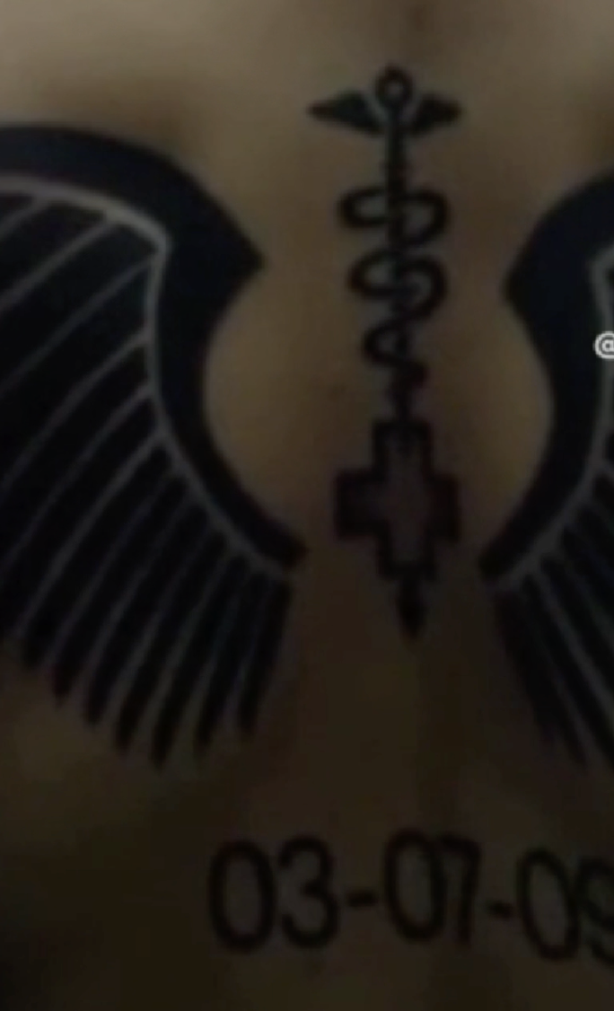 Sharp. Stark. Intentionally bold. A combat medic inked between them — a tattoo like a scar that had something to say. And beneath it, a string of numbers: 03-07-09. Not a date. A warning. A legacy.