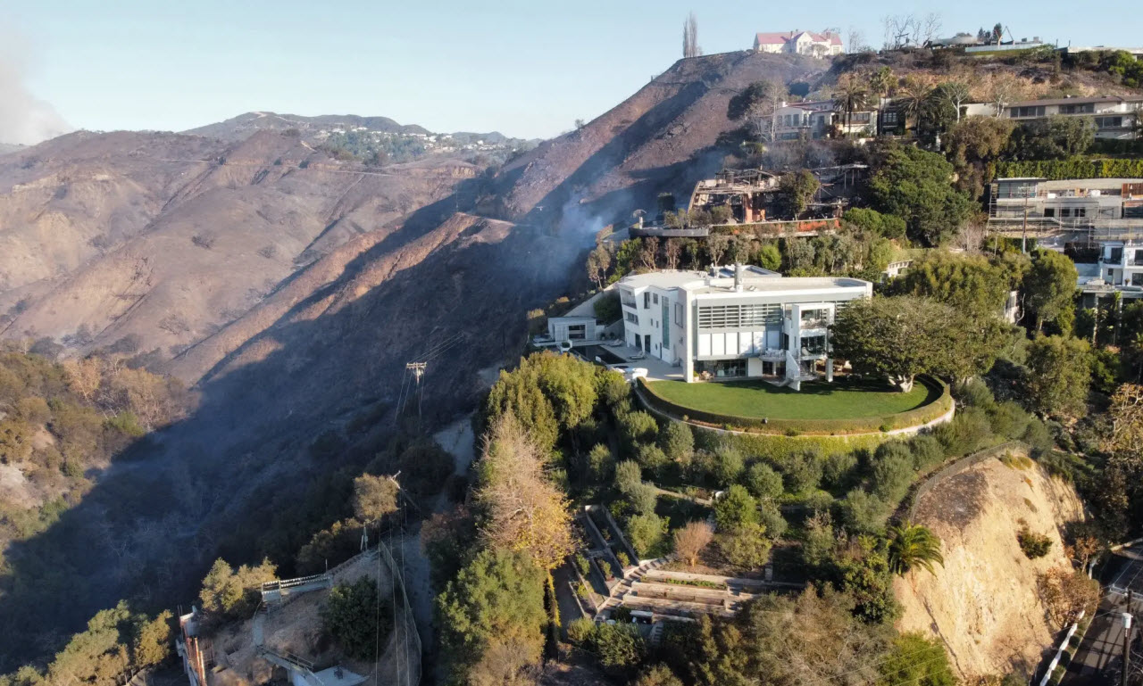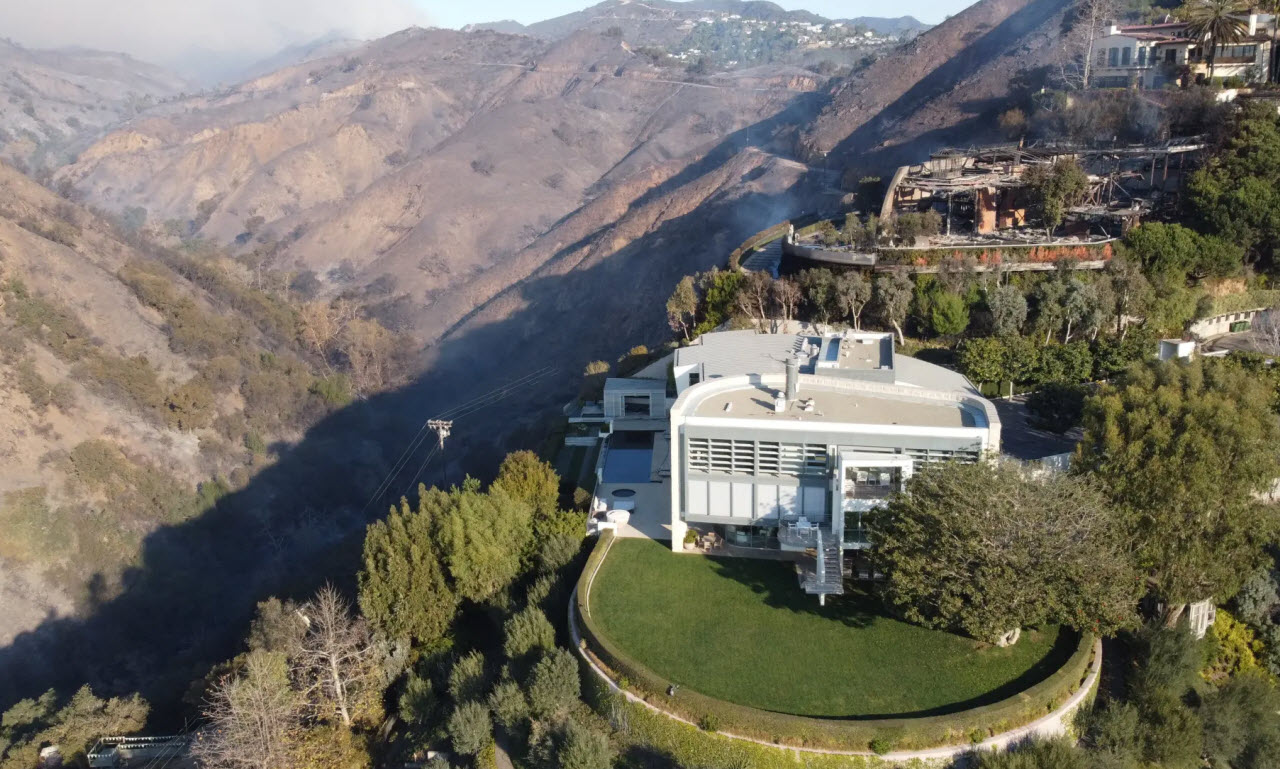 Despite this close call, the couple’s palatial estate continues to stand as a refuge amidst the charred landscape surrounding it – a stroke of fortune that has not been shared by everyone in the area.