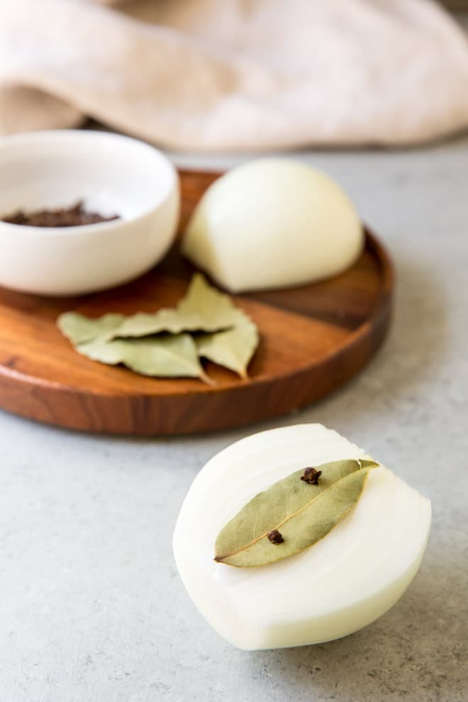 - The Boil: Place the onion and cloves in a small pot with 2 cups of water. Bring to a rolling boil.