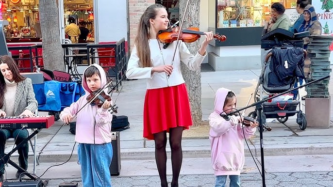 In a truly heartwarming scene, Karolina Protsenko, an incredibly talented violinist, joined forces with her two brothers, Leo and Nicholas, for a spectacular street performance of the timeless classic โJoy to the World.โ Their mother, Ella Protsenko, provided lovely piano accompaniment, wonderfully enhancing the family performance and creating an enchanting setting that captivated everyone around.