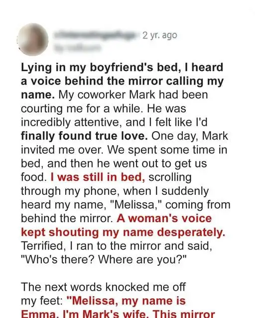 Not long after, muted voices reached her ears. To her disbelief, Mark entered their bedroom with another woman. “Melissa, I just moved in. Hope you don’t mind,” he said, proceeding to kiss the woman passionately, sending shards through Emma’s heart. When Mark left to grab some pizza, Emma seized the moment, crying out, “Melissa! Melissa, can you hear me?”