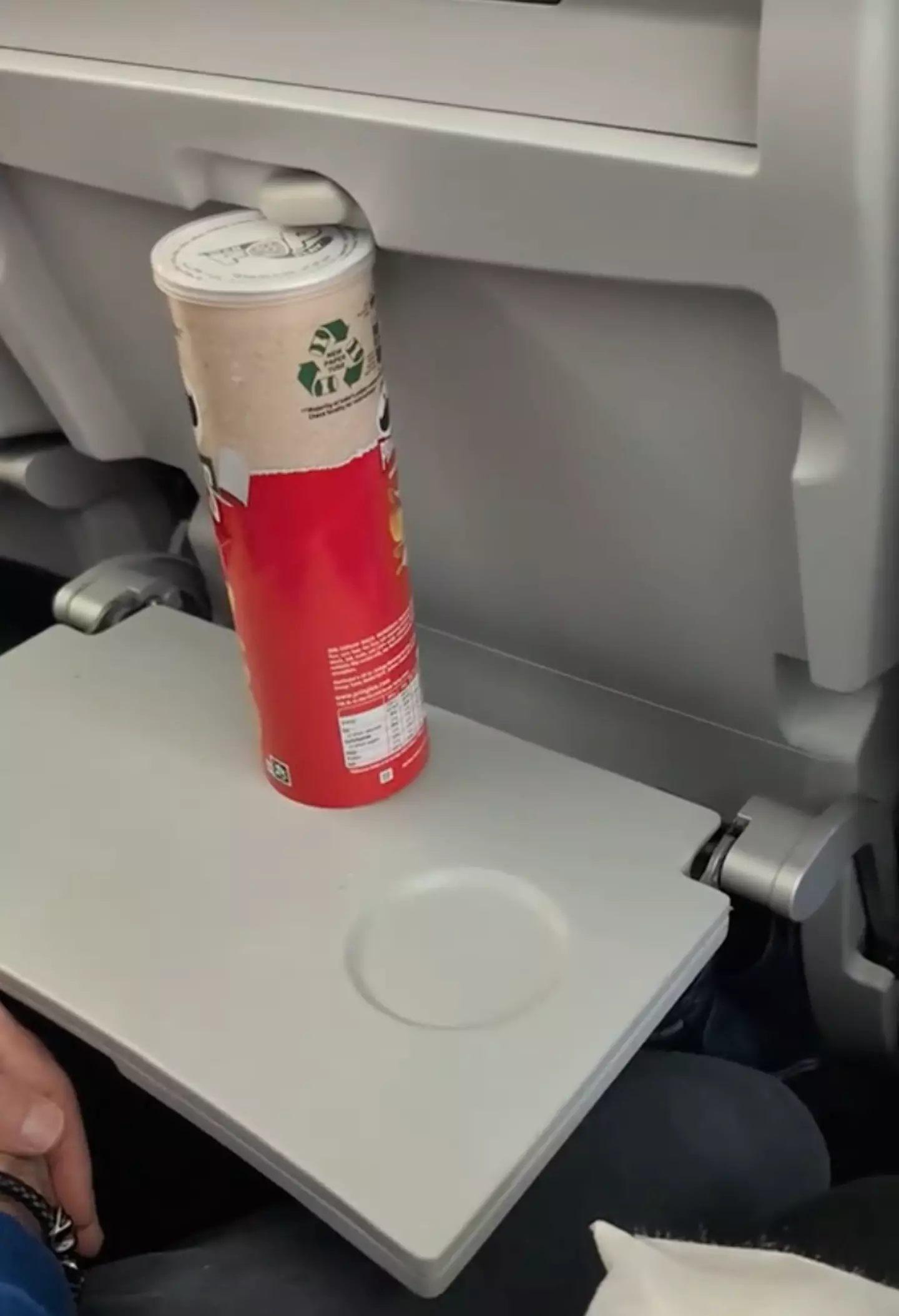Recently, a woman’s unique approach to stopping the passenger in front of her from reclining their seat has stirred the pot on social media. The hack, shared on TikTok by @clareduggan1982, involves using a large Pringles can as a clever way to ward off unwanted reclining.