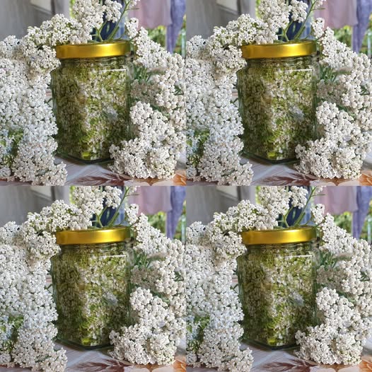 - Fill the jar halfway with yarrow flowers.